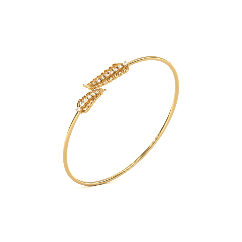 The bracelet’s sleek bangle design offers a secure and comfortable fit, making it perfect for everyday wear or dressing up for special occasions. Its subtle yet eye-catching sparkle ensures it can be worn solo or stacked with other bangles for a more layered look. Perfect for those who appreciate understated luxury, this diamond leaf bangle is an exquisite piece. Whether as a gift or a personal treat, it brings a unique blend of charm and sophistication to any jewelry collection.