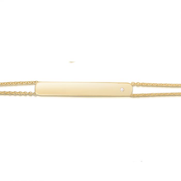 14 Karat Yellow Gold 0.01ct Diamond Bar Engravable Bracelet - 7 inch